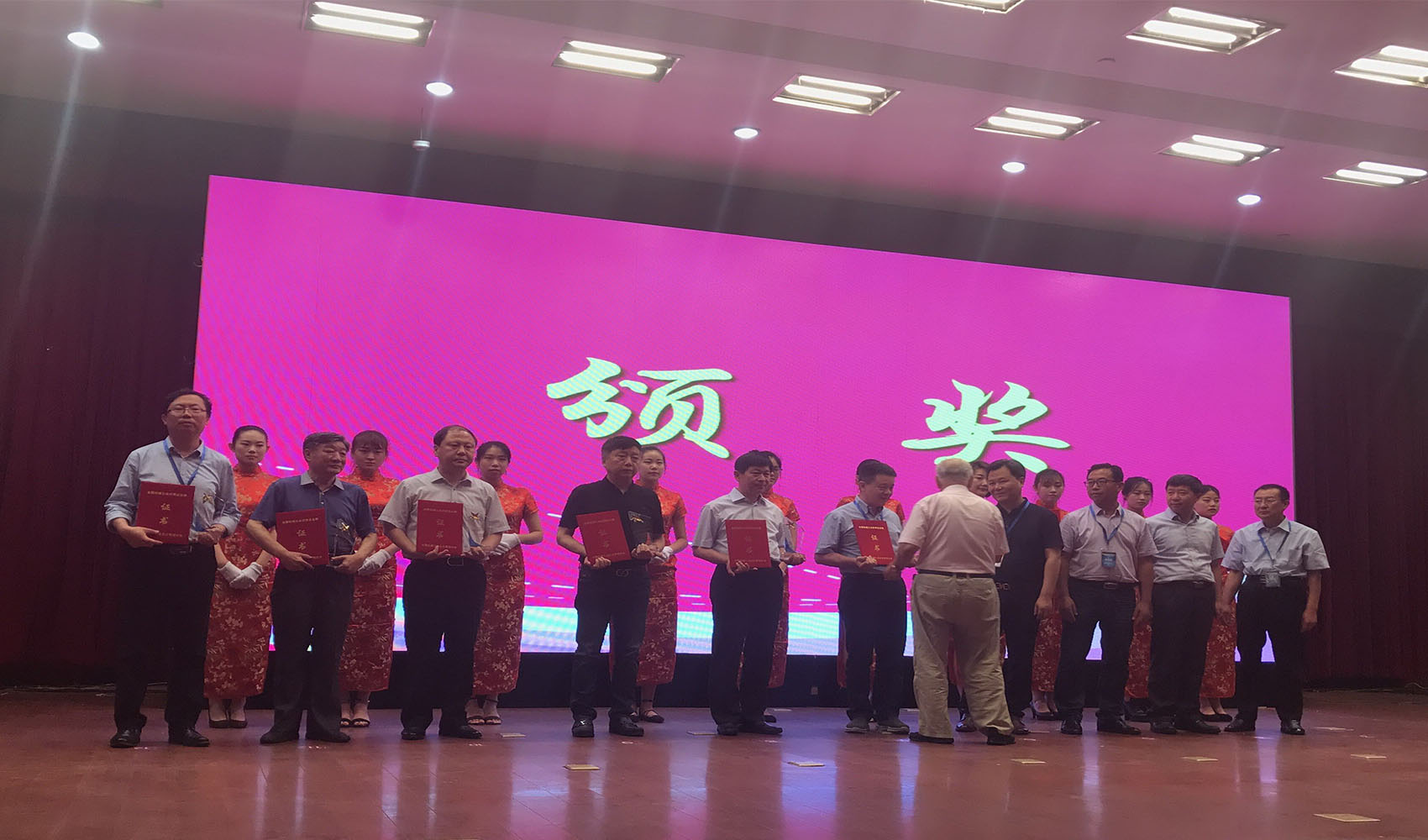 根據公司領(lǐng)導安排,總經(jīng)理辦公室主管王建華和企管人力部主管凌慧參加會(huì )議,并由王建華代表沈其榮上臺領(lǐng)獎(圖為頒獎現場(chǎng),凌慧攝)。(趙新生)